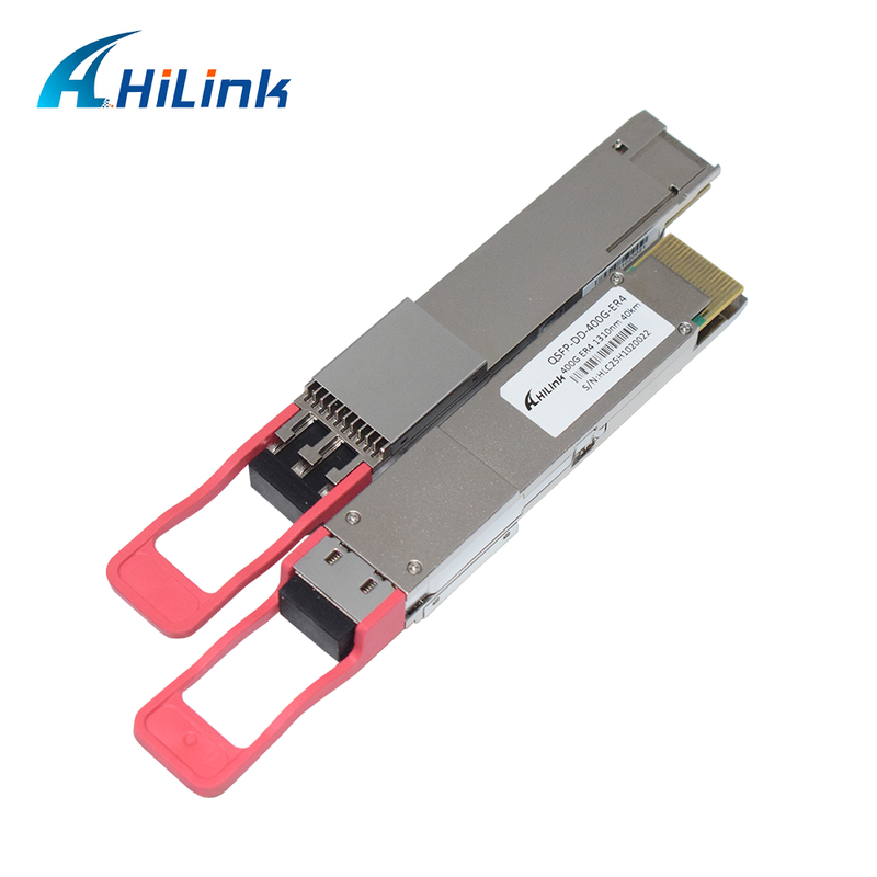 El transceptor 400G QSFP-DD-ER4 está diseñado para su uso en aplicaciones de red de 400 Gb/s, con una distancia máxima de transmisión de 40 km.