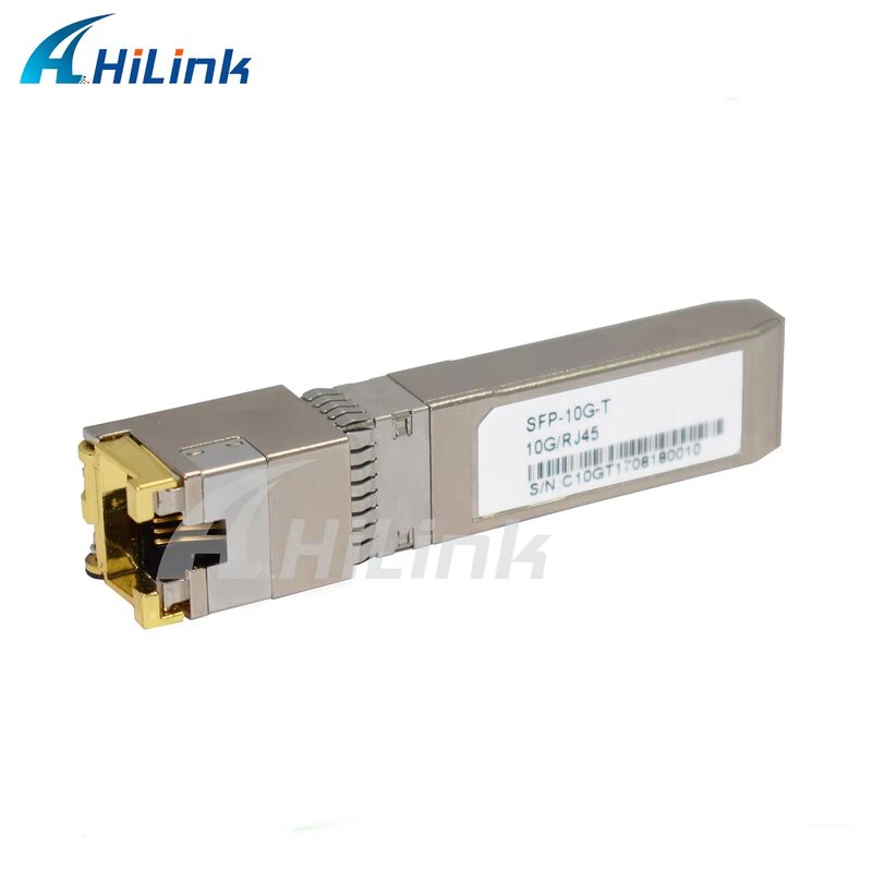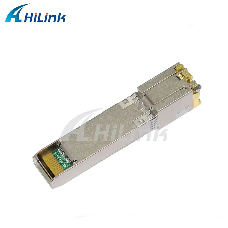 Los transceptores SFP+-10GBASE-T de cobre enchufable de forma pequeña (SFP) se basan en el Acuerdo de fuentes múltiples (MSA) de SFP. Son compatibles con el 10Gbase-T / 5Gbase-T / 2.Normas 5Gbase-T / 1000base-T según lo especificado en el IEEE Std 802.3. SFP+-10GBASE-T utiliza el pin RX_LOS del SFP para la indicación del enlace. Si se saca el pin TX_DISABLE del SFP, se restablece el PHY IC.